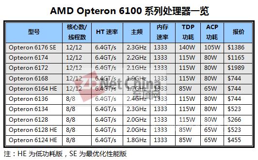 Opteron 6200与Opteron 4200的官方报价,4200最低价为125美元,6200最高为1019美元