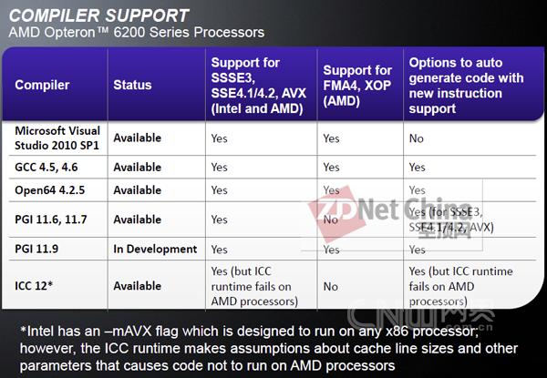 Opteron 6200除了具备与英特尔SandyBridge相同的指令集外,还独家提供了两套指令集