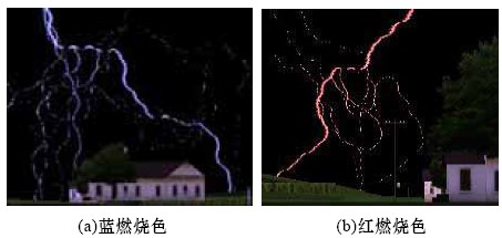 其中,iGλ为段i在光线λ下的燃烧颜色;gλ为光线λ的最大值;为段i周围燃烧区域宽度的一半,把它设置为段i的长度;为距离段i的距离。由于当>2.2倍的时,ididiW2exp(())iidW−的值已经小于1%,因此在计算的时候只需要计算闪电段两侧2.2倍距离以内的点,这样就大大减小计算的复杂度。